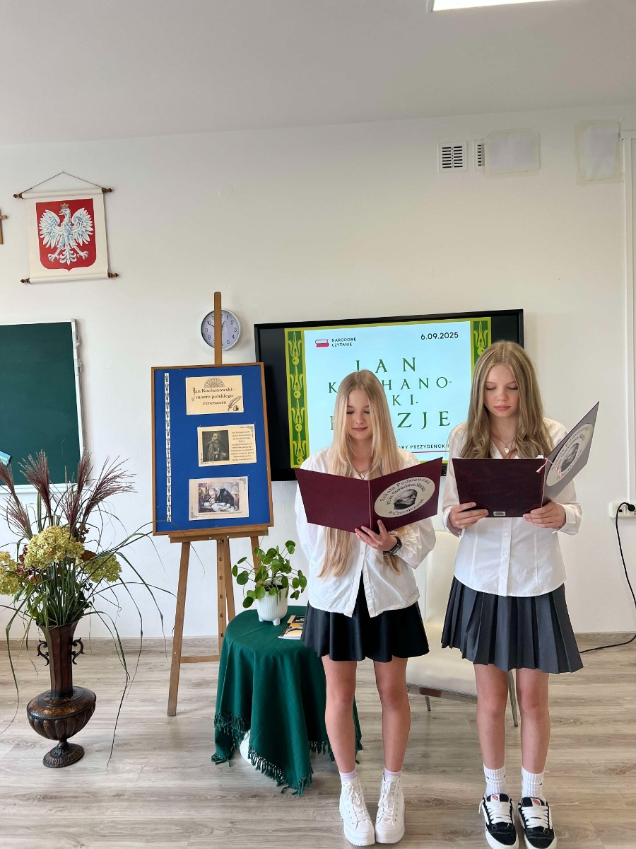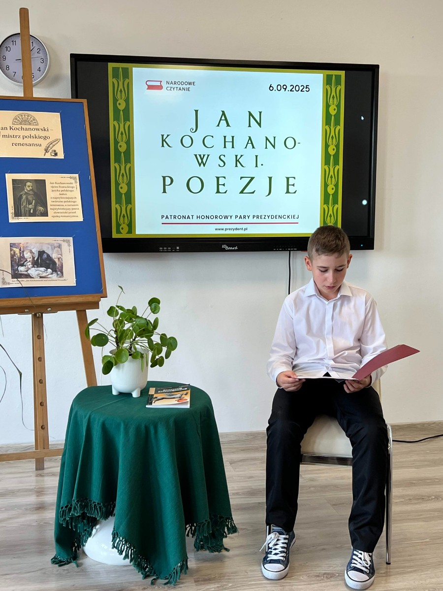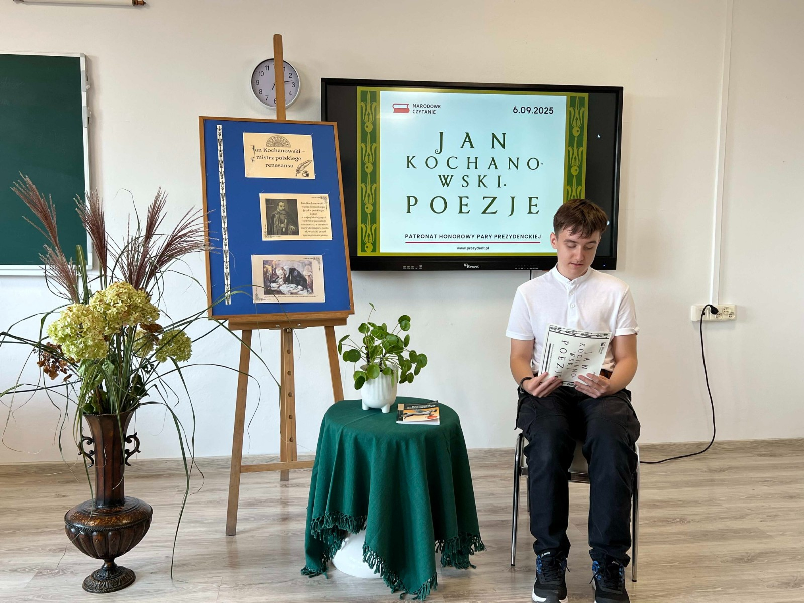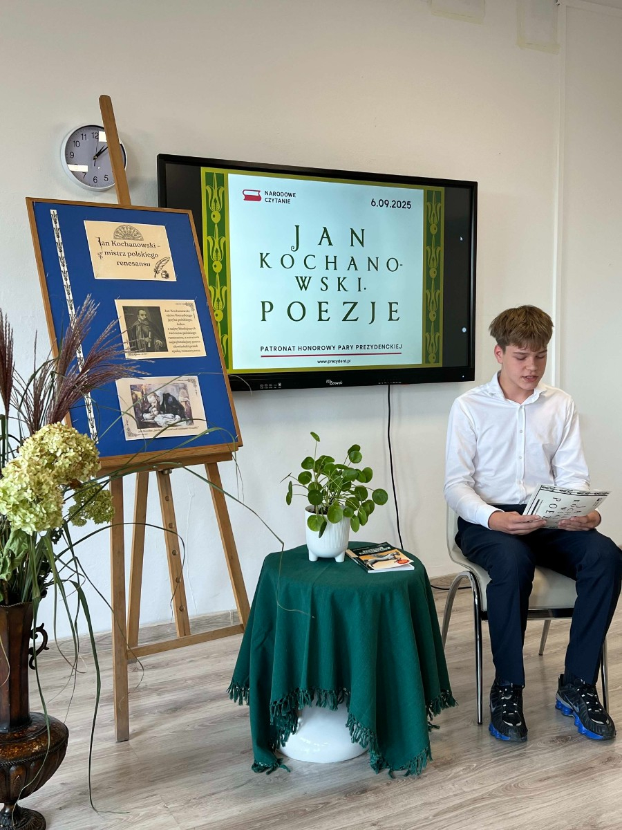 W piątek 12 września, uczniowie i nauczyciele naszej szkoły włączyli się w ogólnopolską akcję Narodowego Czytania 2025, pod patronatem Pary Prezydenckiej. W tym roku przypomnieliśmy poezje jednego z największych twórców polskiego renesansu – Jana Kochanowskiego.