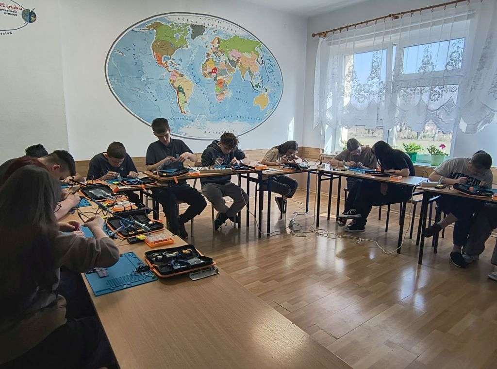 W dniu 25.03.2026 w naszej szkole odbyły się warsztaty z elektroniki w ramach Ogólnopolskiego Programu „Klucz do Kosmosu”. Program obejmuje szereg działań, mających na celu zbudowanie klucza telegraficznego – urządzenia do nadawania sygnału alfabetem Morse’a i nadanie takiego sygnału. W warsztatach uczestniczyło 12 uczniów naszej szkoły.