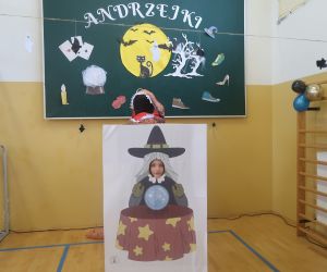 Uczniowie prezentujące swoje stroje andrzejkowe