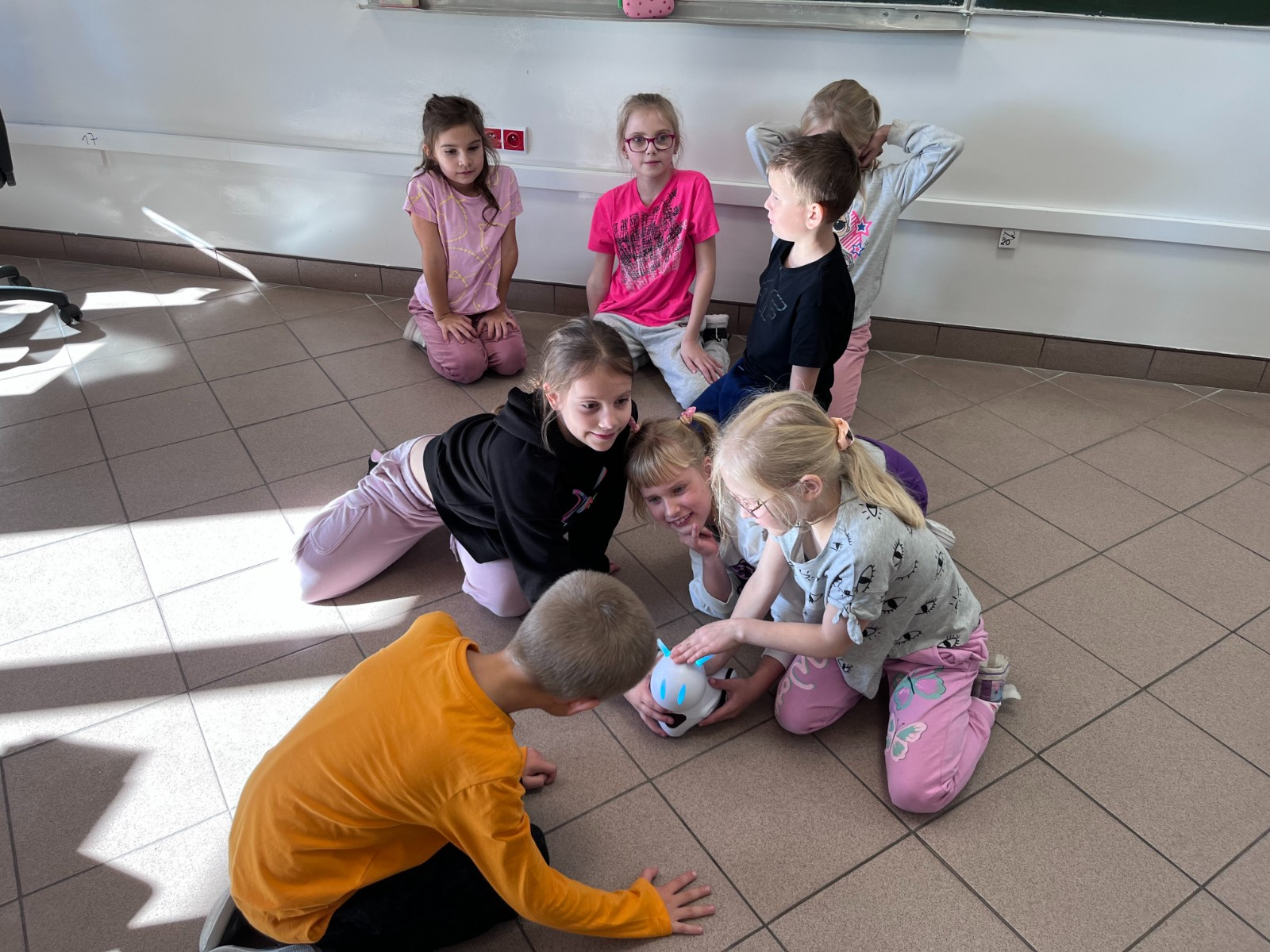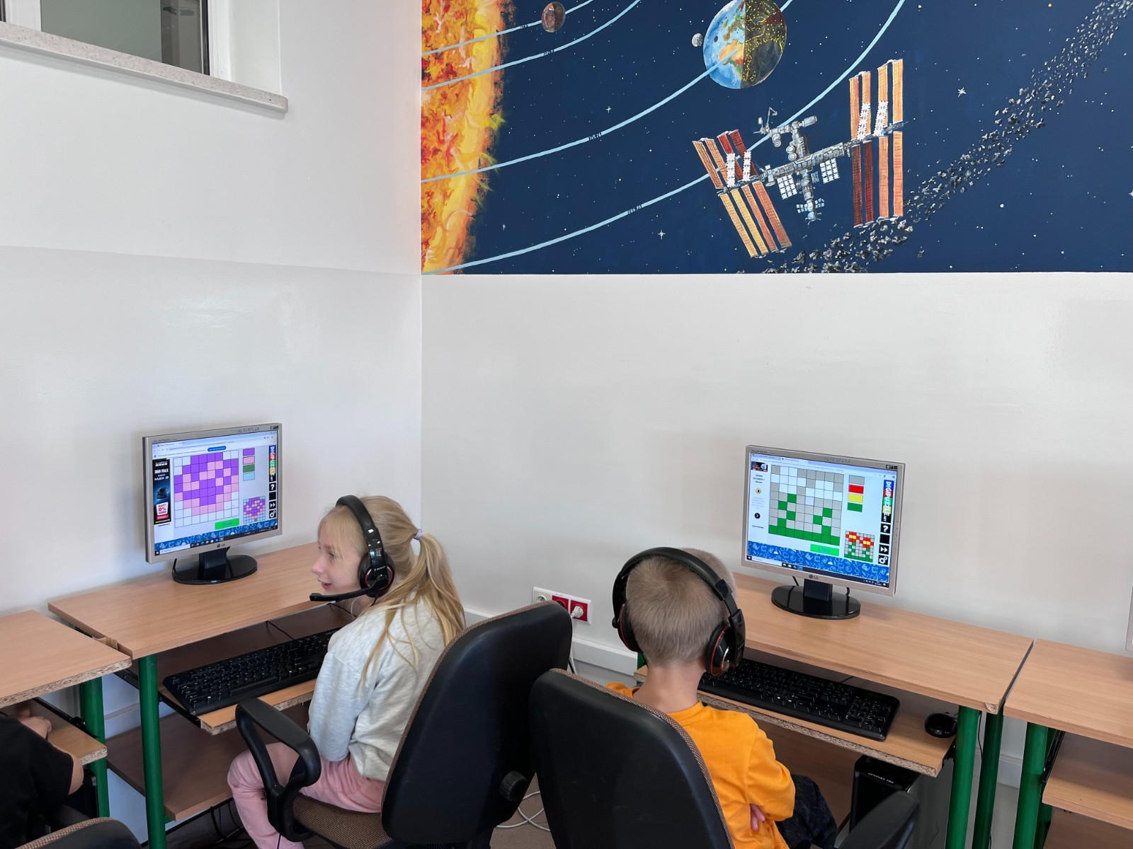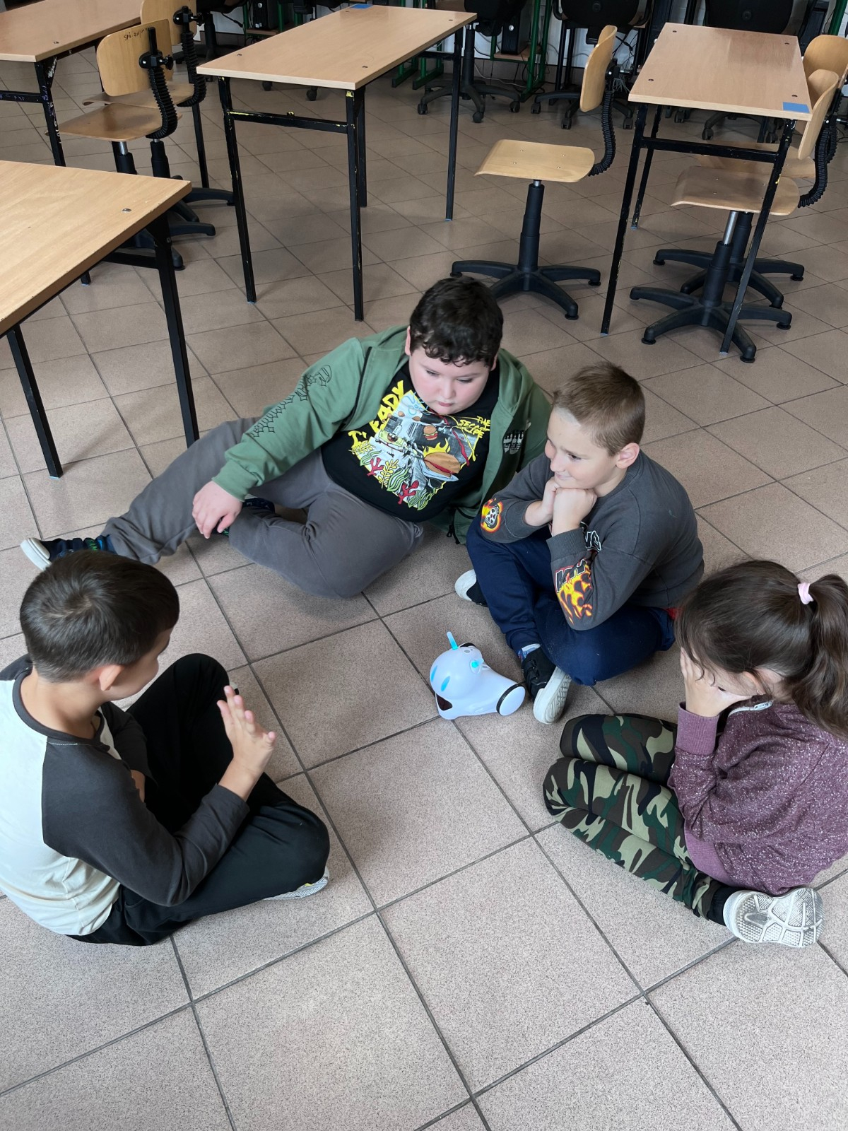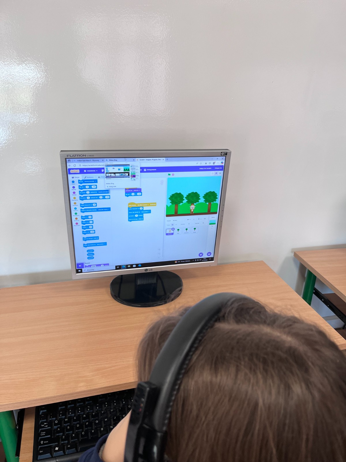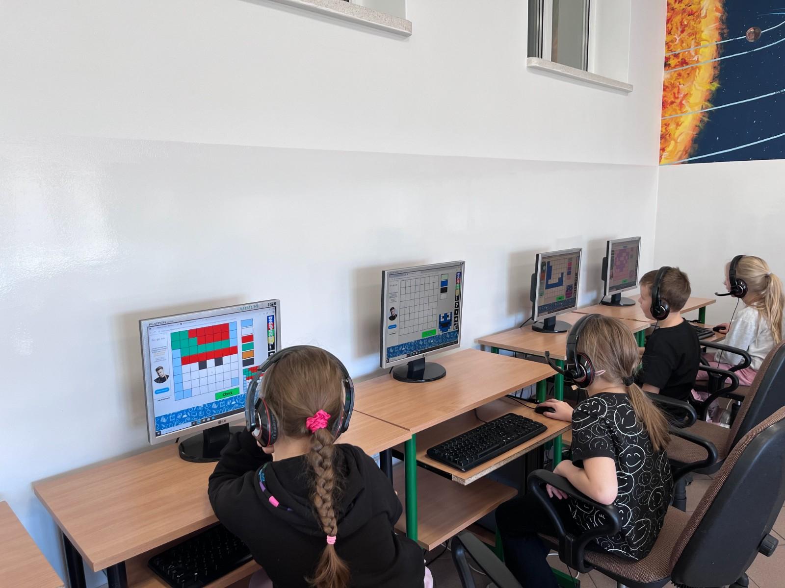 Koordynatorem działań była pani Marlena Chomiak, nauczycielka informatyki, która przygotowała szereg ciekawych zajęć dopasowanych do wieku i możliwości uczniów. Najmłodsi uczniowie uczestniczyli w zajęciach online z kodowania, podczas których wprowadzani byli w świat algorytmicznego myślenia poprzez zabawę i proste zadania logiczne. Dodatkowo dzieci miały okazję pracować z robotem Photon, ucząc się programowania w praktyce – sterując jego ruchem, światłami i dźwiękiem. Uczniowie starszych klas rozwijali swoje umiejętności programistyczne w środowisku Scratch, tworząc własne animacje, gry i interaktywne projekty. Część zajęć odbywała się online, co pozwoliło na jeszcze większą swobodę pracy i wymianę pomysłów między uczestnikami. Zajęcia w ramach Code Week 2025 pokazały, że nauka programowania może być świetną zabawą. Uczniowie z zaangażowaniem rozwiązywali zadania, eksperymentowali i dzielili się swoimi pomysłami. Dzięki takim inicjatywom uczymy się nie tylko obsługi komputerów, ale przede wszystkim logicznego myślenia, kreatywności i współpracy — umiejętności niezwykle ważnych w dzisiejszym świecie.