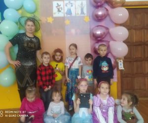 Dzieci prezentują się w andrzejkowych przebraniach