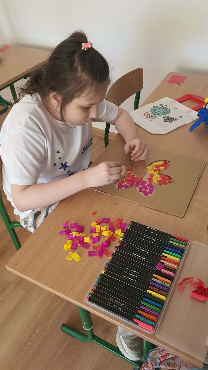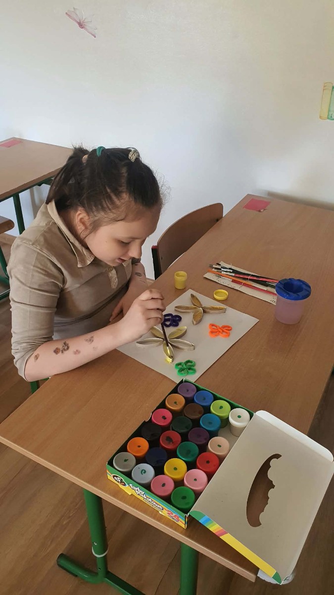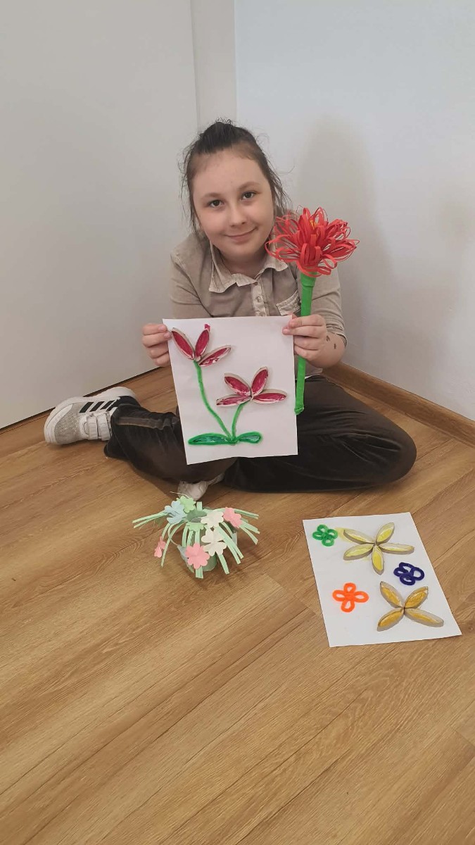 Wiosna to czas świeżości i nowych pomysłów. Zadanie polegało na stworzeniu barwnych kwiatów przy użyciu dowolnych materiałów np.: bibuły, papieru, farb czy plasteliny. Gabrysia zrobiła własny „ogród marzeń”, w którym każdy z jej wykonanych kwiatów symbolizował: uczucia, pragnienia i marzenia, była to także doskonała okazja do rozmów o emocjach i wrażliwośći. Podczas wykonywaniu prac plastycznych uczennicy klasy trzeciej Gabrysi towarzyszyły wiosenne słuchowiska, oraz w trakcie przerw zabawy ruchowe. Opiekunem warsztatów jest Anna Pałys.