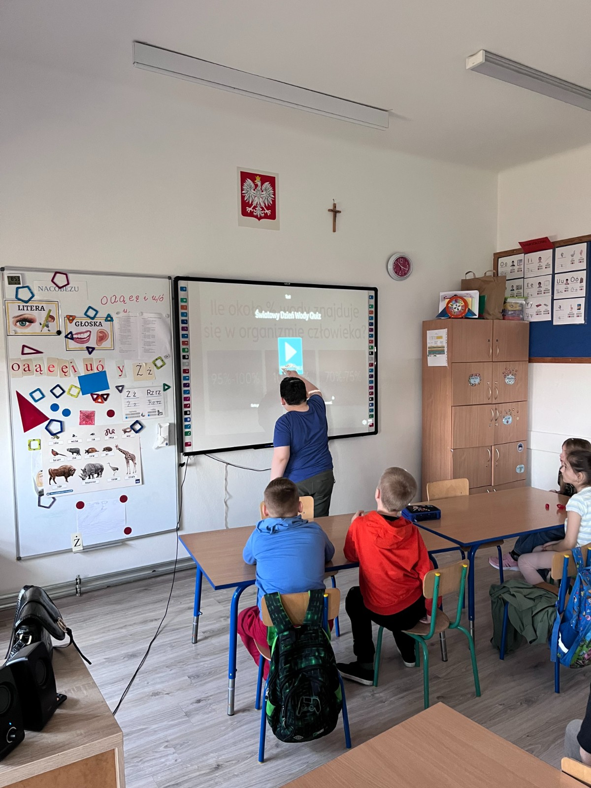 Dzień ten jest obchodzony na całym świecie 22 marca i przypomina, jak cennym i niezbędnym zasobem jest woda, a także jak ważne jest jej oszczędzanie i dbanie o jej czystość. Z tej okazji uczniowie naszej szkoły uczestniczyli w wielu ciekawych i angażujących aktywnościach. Podczas zajęć oglądali filmy edukacyjne, dzięki którym mogli dowiedzieć się, skąd pochodzi woda, jak wygląda jej obieg w przyrodzie oraz jakie zagrożenia wiążą się z jej niedoborem w różnych częściach świata. Dużym zainteresowaniem cieszyły się także gry edukacyjne online, które w przystępny i atrakcyjny sposób utrwalały zdobytą wiedzę. Młodsi uczniowie chętnie sięgali po kolorowanki tematyczne, rozwijając przy tym swoją kreatywność i jednocześnie ucząc się o znaczeniu wody. Na szkolnym korytarzu dostępna była woda dla wszystkich uczniów, co dodatkowo podkreślało wagę jej obecności w codziennym życiu oraz zachęcało do sięgania po zdrowe nawyki. Nad przebiegiem całego przedsięwzięcia czuwali opiekunowie szkolnego koła PCK, którzy zadbali o to, aby zajęcia były nie tylko ciekawe, ale również wartościowe pod względem edukacyjnym.