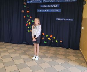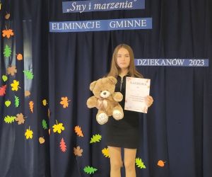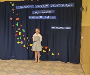 Dnia 26 października 2023 r. uczniowie naszej szkoły wzięli udział w Eliminacjach Gminnych 27. Jesiennego Konkursu Recytatorskiego pod hasłem „Sny i marzenia”, które odbyły się w Świetlicy Wiejskiej w Dziekanowie.