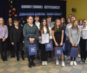 Tym razem do rywalizacji zostali zaproszeni uczniowie kl. VI – VIII szkół podstawowych z terenu Gminy Hrubieszów. Do turnieju przystąpiły 4 drużyny reprezentujące Szkoły Podstawowe w Czerniczynie, Husynnem, Stefankowicach oraz w Ślipczu z/s w Kozodawach. Zadaniem uczestników było rozwiązanie testu, krzyżówki, wykreślanki, uzupełnienie tabeli, a na zakończenie drużyny udzielały odpowiedzi na losowo wybrane pytania. Wszystkie zadania przygotowano na podstawie lektur: „Dziady cz.II” Adama Mickiewicza, „Balladyna” Juliusza Słowackiego oraz wybrane bajki Ignacego Krasickiego. Najlepszą wiedzą wykazali się uczniowie ze Szkoły Podstawowej w Stefankowicach. Drugie miejsce zajęła Szkoła Podstawowa w Husynnem, trzecie miejsce przypadło Szkole Podstawowej w Ślipczu z/s w Kozodawach, a po za podium znalazła się drużyna z Czerniczyna. Dla wszystkich uczestników turniej był okazją do rywalizacji oraz dobrej zabawy. Dziękujemy uczniom i nauczycielom za zaangażowanie, przygotowanie i przystąpienie do konkursu.