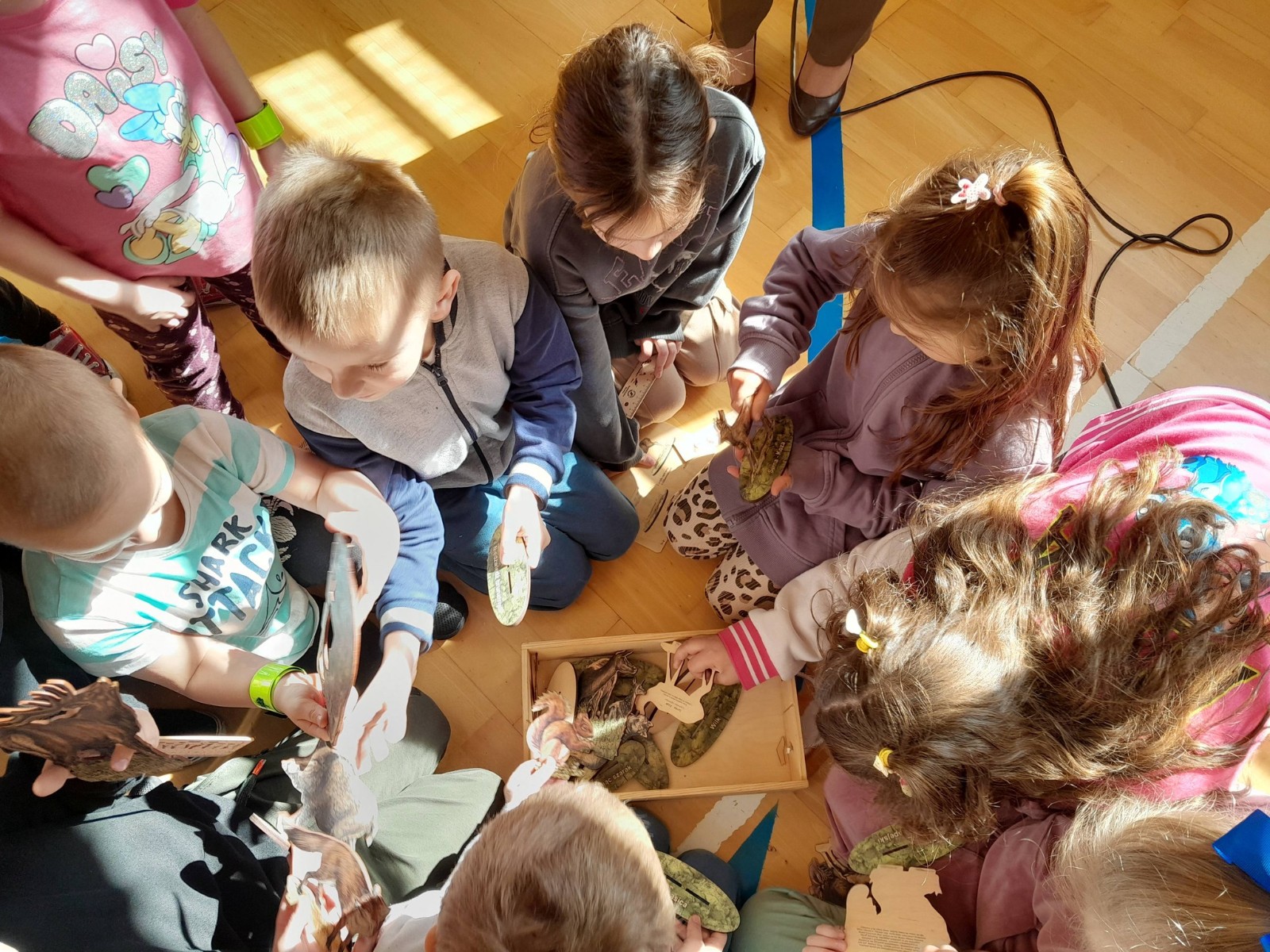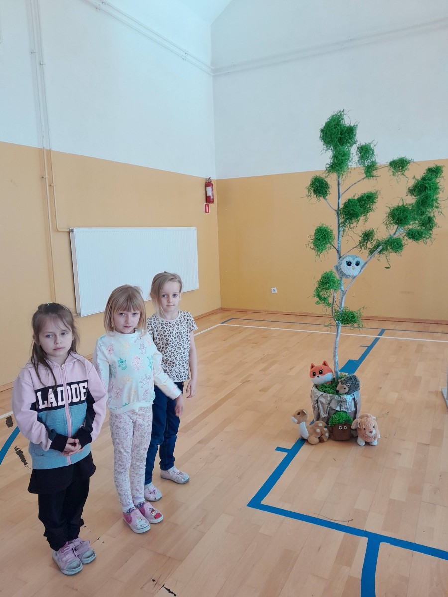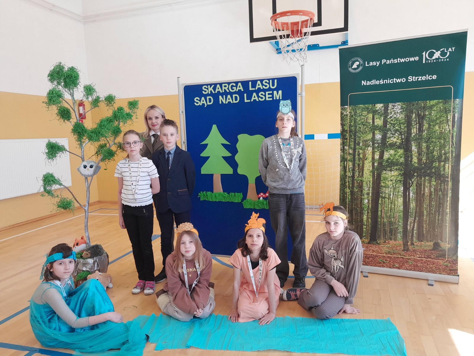 Z tej okazji naszą szkołę odwiedziła dziś pani leśnik Patrycją Jakubowska z Nadleśnictwa Strzelce. Opowiadała o właściwym zachowaniu w lesie, występujących tam roślinach i zwierzętach. Chętnie odpowiadała na pytania uczniów. Prelekcja poprzedzona była krótkim występem artystycznym w wykonaniu uczniów czwartej klasy.