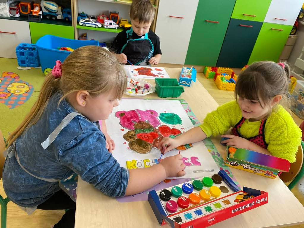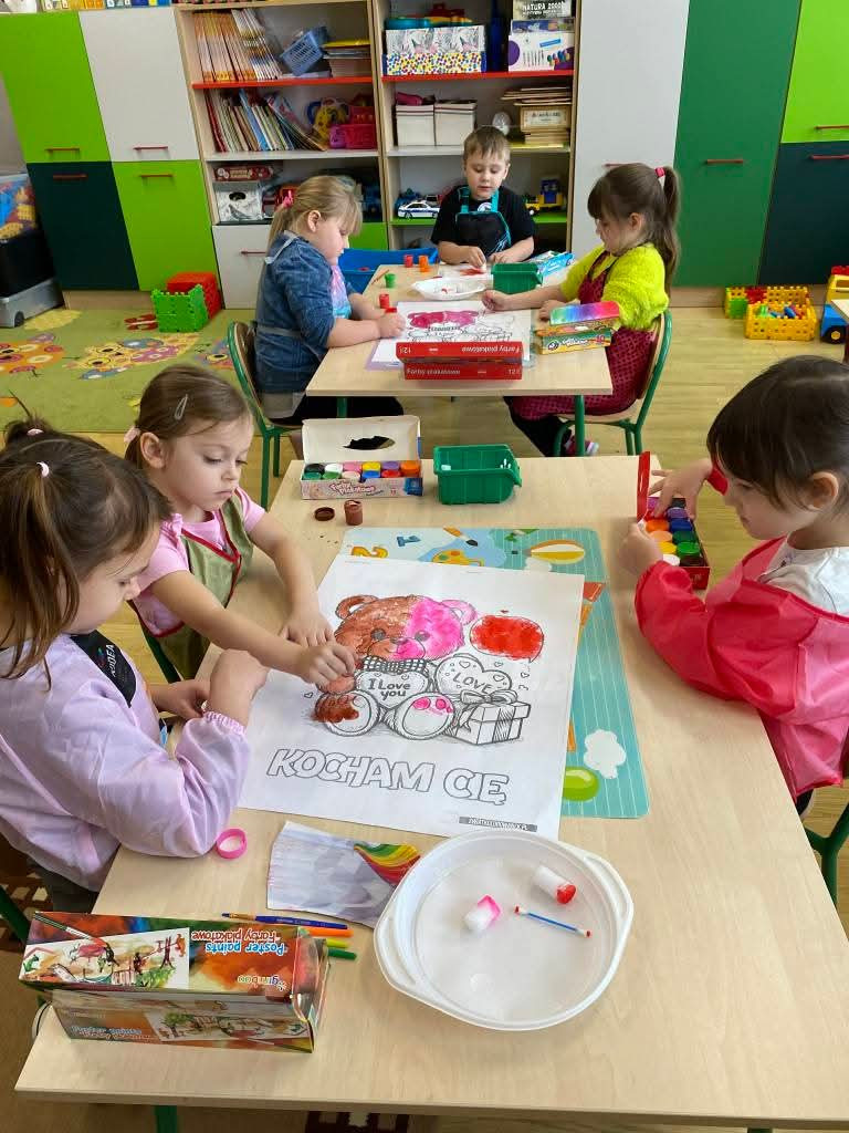 Dzieci brały udział w różnorodnych aktywnościach edukacyjnych i zabawowych. Wykonywały prace plastyczne związane z tematyką misiów, rozwijając przy tym kreatywność oraz sprawność manualną. Nie zabrakło także zabaw ruchowych, ćwiczeń muzycznych i zajęć dydaktycznych, podczas których dzieci liczyły, dopasowywały elementy, rozwiązywały proste zadania oraz uczestniczyły w zabawach językowych.