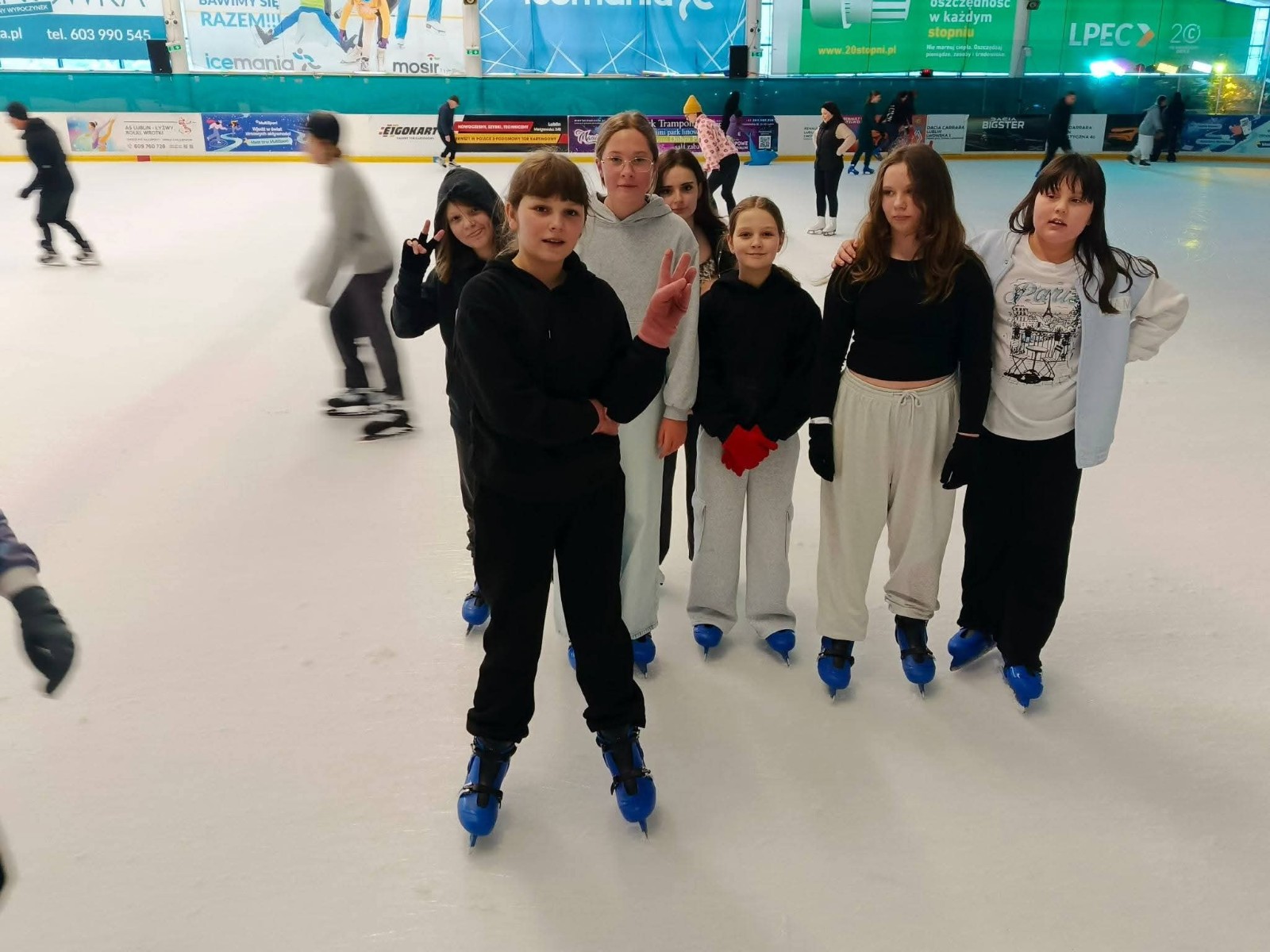 Pierwszym punktem programu była wizyta na lodowisku „Icemania”, gdzie uczniowie uczyli się jazdy na łyżwach oraz doskonalili już posiadane umiejętności. Dla części uczestników był to pierwszy kontakt z lodem, co wymagało odwagi, cierpliwości i wzajemnego wsparcia. Zajęcia przebiegały w bezpiecznej atmosferze i dostarczyły wszystkim wiele radości.