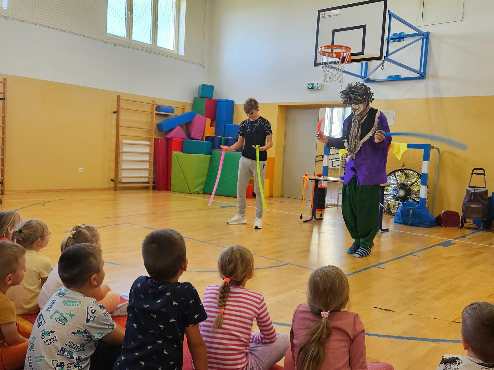 Dziś w naszej szkole odbyło się spotkanie z klaunem Waldusiem. Podczas występu dzieci mogły obejrzeć różnorodne pokazy cyrkowe, żonglerkę, zabawy ruchowe oraz krótkie scenki teatralne.