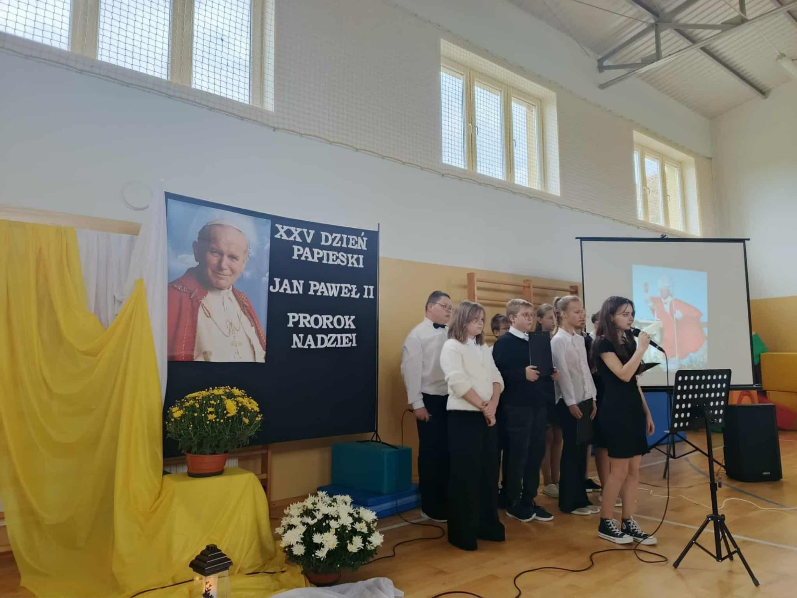 To szczególne święto – Dzień Patrona szkoły, który co roku przypomina społeczności szkolnej o wartościach, jakie głosił św. Jan Paweł II: wierze, nadziei i miłości. Podczas uroczystości uczniowie zaprezentowali montaż słowno-muzyczny poświęcony życiu i nauce Jana Pawła II.