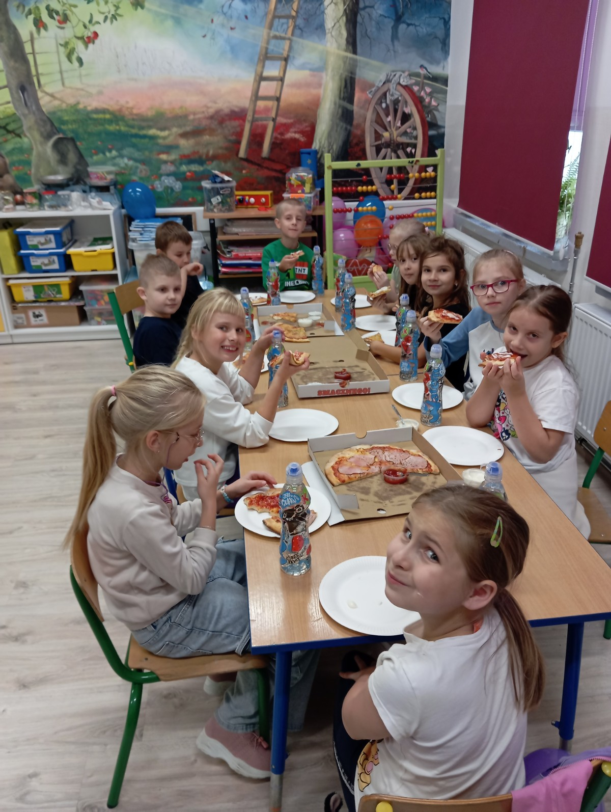 Z tej okazji Klasowa Rada Rodziców przygotowała upominki dla dzieci oraz poczęstunek – pizzę. Świetnie bawiliśmy się podczas dyskoteki.