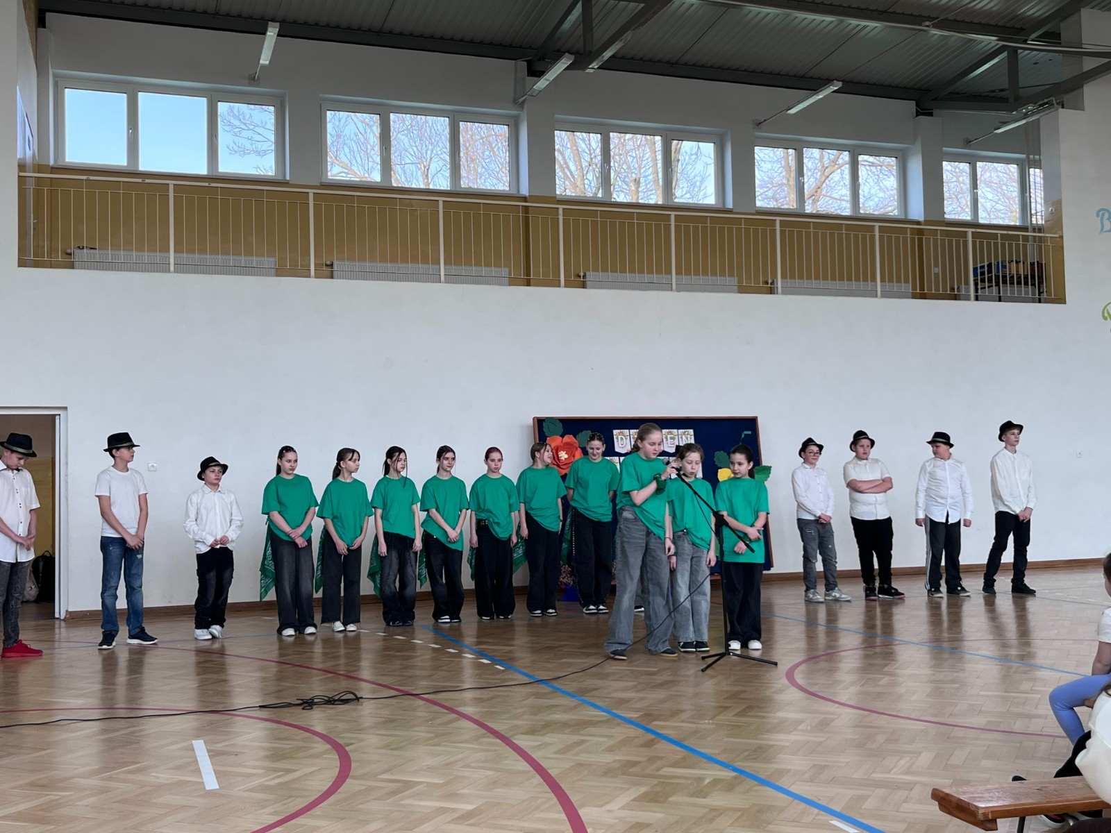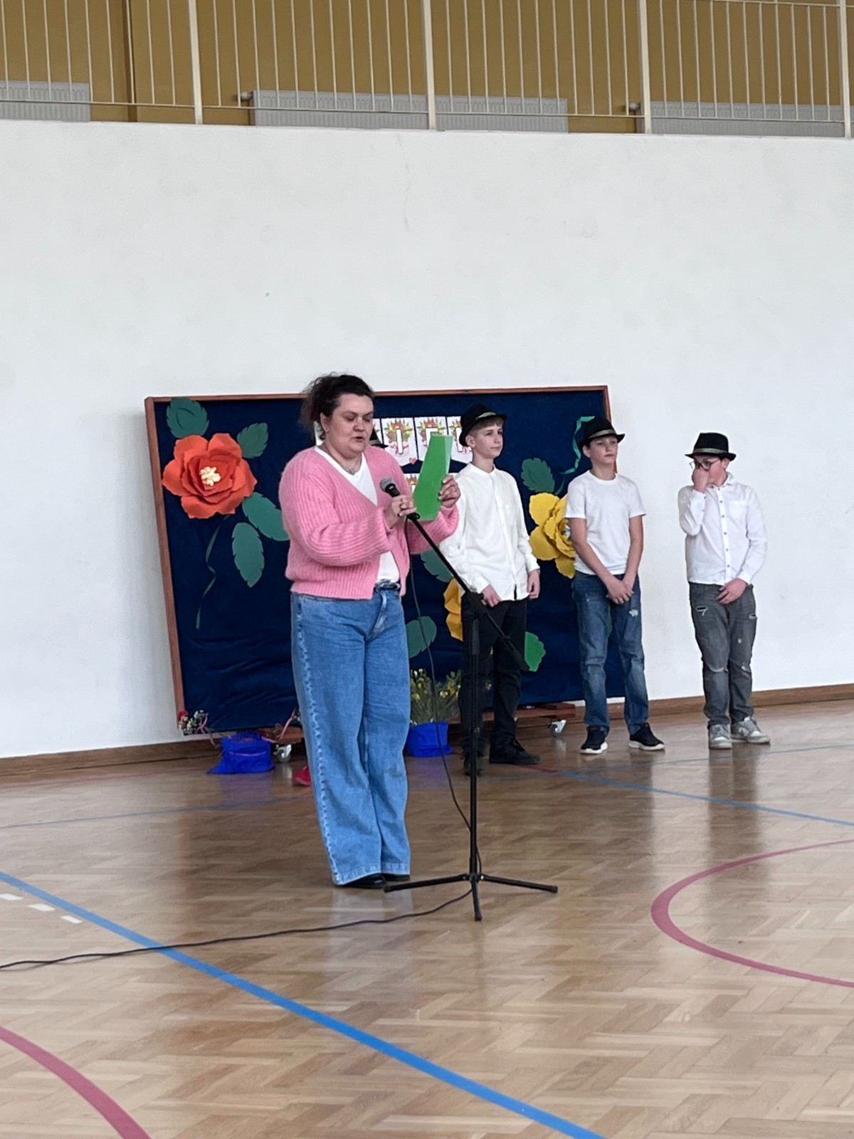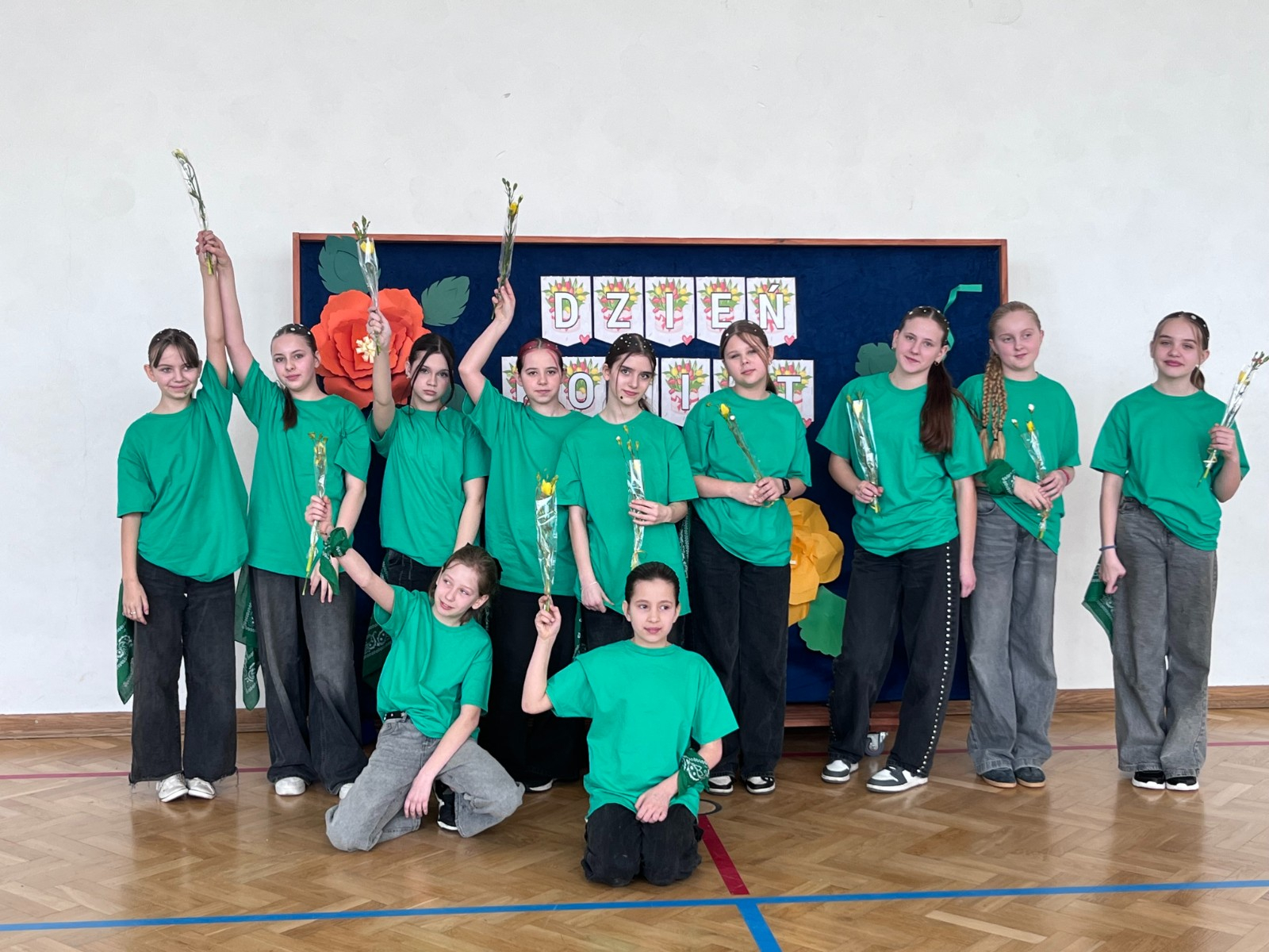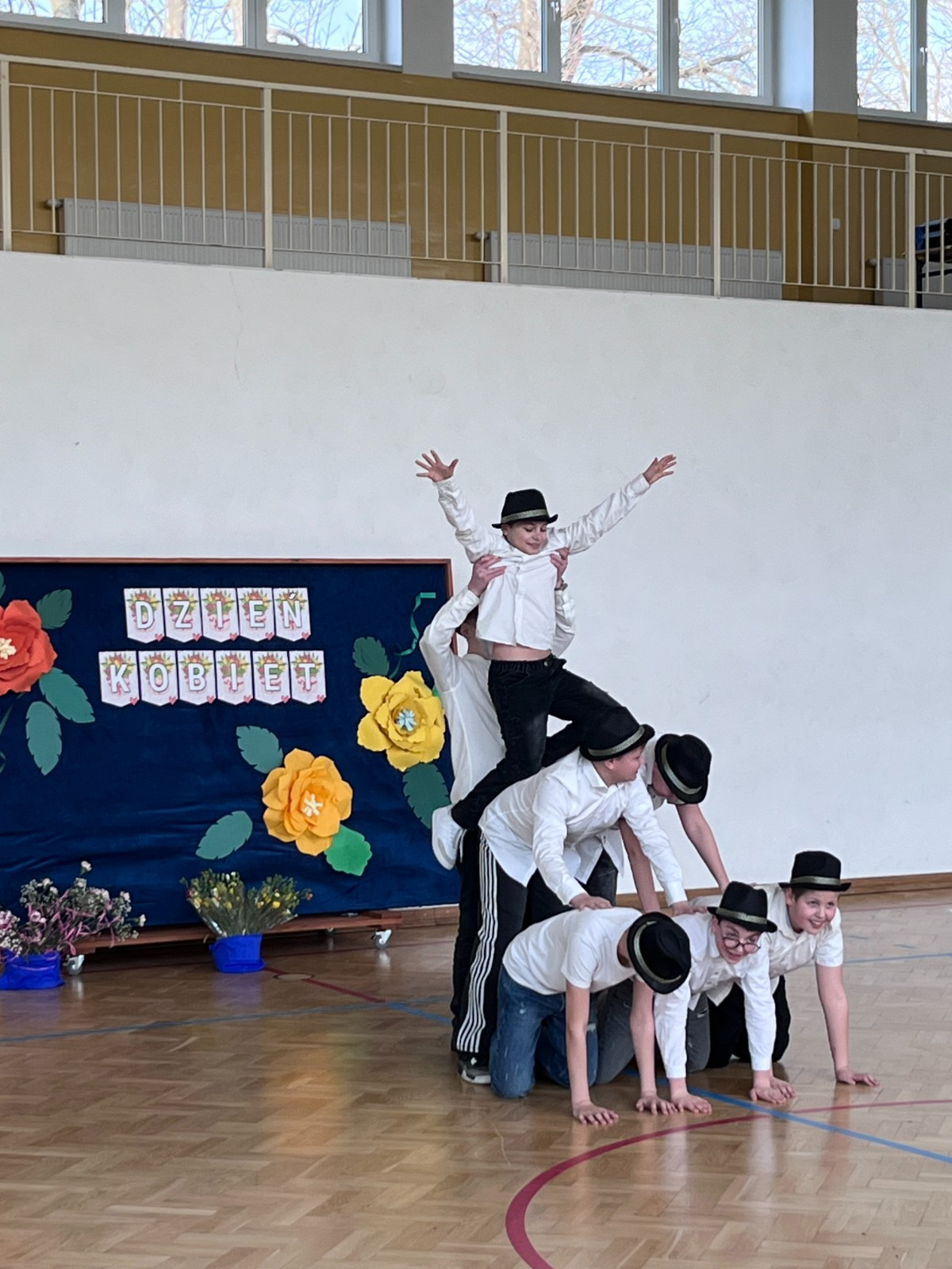 Było to wyjątkowe wydarzenie, podczas którego uczniowie klas 4–8 przygotowali dla wszystkich pań piękny program artystyczny. Podczas uroczystości mogliśmy podziwiać występy uczniów, którzy zaprezentowali tańce współczesne, piosenki oraz wiersze. Występ został nagrodzony gromkimi brawami, a całość wprowadziła wszystkich w radosny i uroczysty nastrój. W wydarzeniu uczestniczyły także mamy z Rady Rodziców. Przedstawicielka Rady złożyła wszystkim kobietom serdeczne życzenia, dziękując za ich codzienną pracę, troskę i zaangażowanie. Nie zabrakło również miłych gestów, wszystkie panie otrzymały kwiaty oraz słodkie upominki, które były wyrazem wdzięczności i szacunku. To spotkanie było piękną okazją do wspólnego świętowania oraz okazania wdzięczności wszystkim kobietom w naszej szkolnej społeczności.