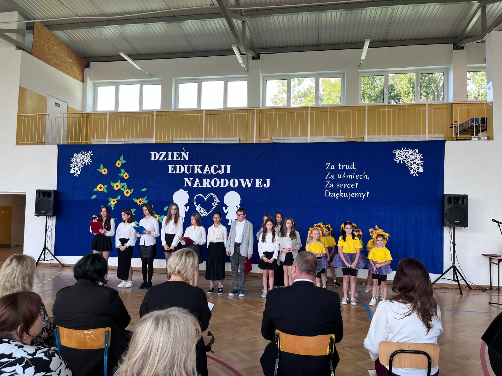 Uroczystość zgromadziła dyrektorów oraz nauczycieli ze wszystkich szkół z terenu Gminy Hrubieszów. Spotkanie rozpoczęła pani dyrektor szkoły Urszula Duda, która serdecznie powitała zaproszonych gości, przedstawicieli władz gminnych, nauczycieli, uczniów oraz rodziców. Następnie odbyła się uroczysta akademia przygotowana przez uczniów szkoły i przedszkolaków. Dzieci zaprezentowały bogaty program artystyczny – wiersze, piosenki i tańce, które wprowadziły wszystkich w radosny, pełen wdzięczności nastrój. Kulminacyjnym momentem obchodów było uroczyste wręczenie nagród i wyróżnień dla nauczycieli i dyrektorów szkół, które w imieniu Wójta Gminy Hrubieszów przekazali pani Aleksandra Muzyczuk – Zastępca Wójta Gminy Hrubieszów oraz pan Radosław Szkudziński – Inspektor Oświaty. Po części oficjalnej uczestnicy spotkania zostali zaproszeni na słodki poczęstunek, podczas którego nie zabrakło tortu, ciast oraz rozmów w miłej, serdecznej atmosferze. Uroczystość ta była nie tylko okazją do wspólnego świętowania, ale także do wyrażenia wdzięczności wszystkim nauczycielom i pracownikom oświaty za ich codzienny trud, zaangażowanie i serce wkładane w wychowanie młodego pokolenia.
