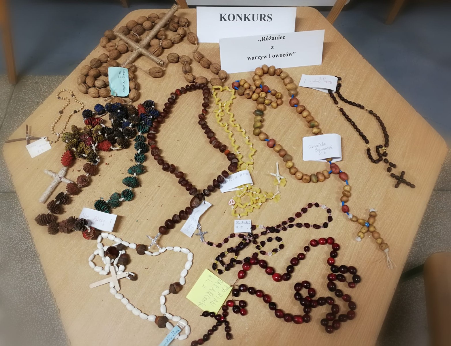 Zgodnie z coroczną tradycją, w miesiącu październiku w naszej szkole przeprowadzony został konkurs pod nazwą „Różaniec z warzyw i owoców”.