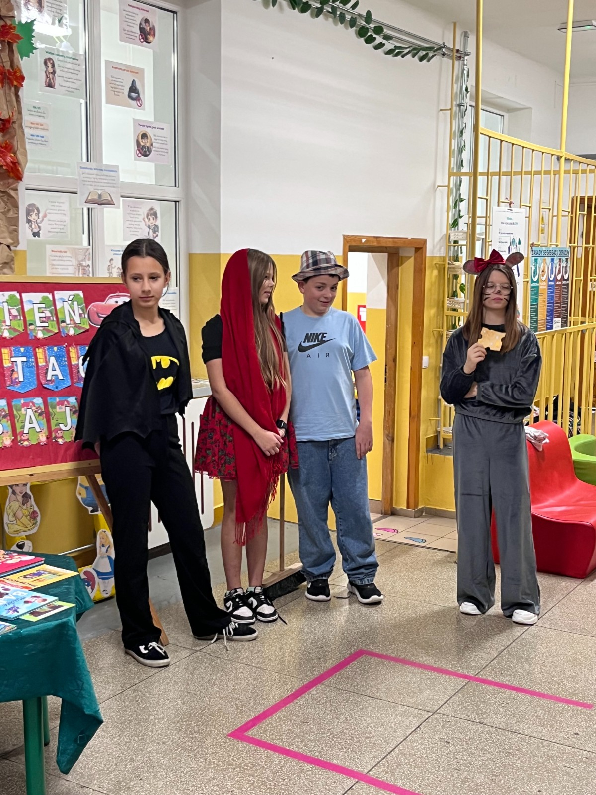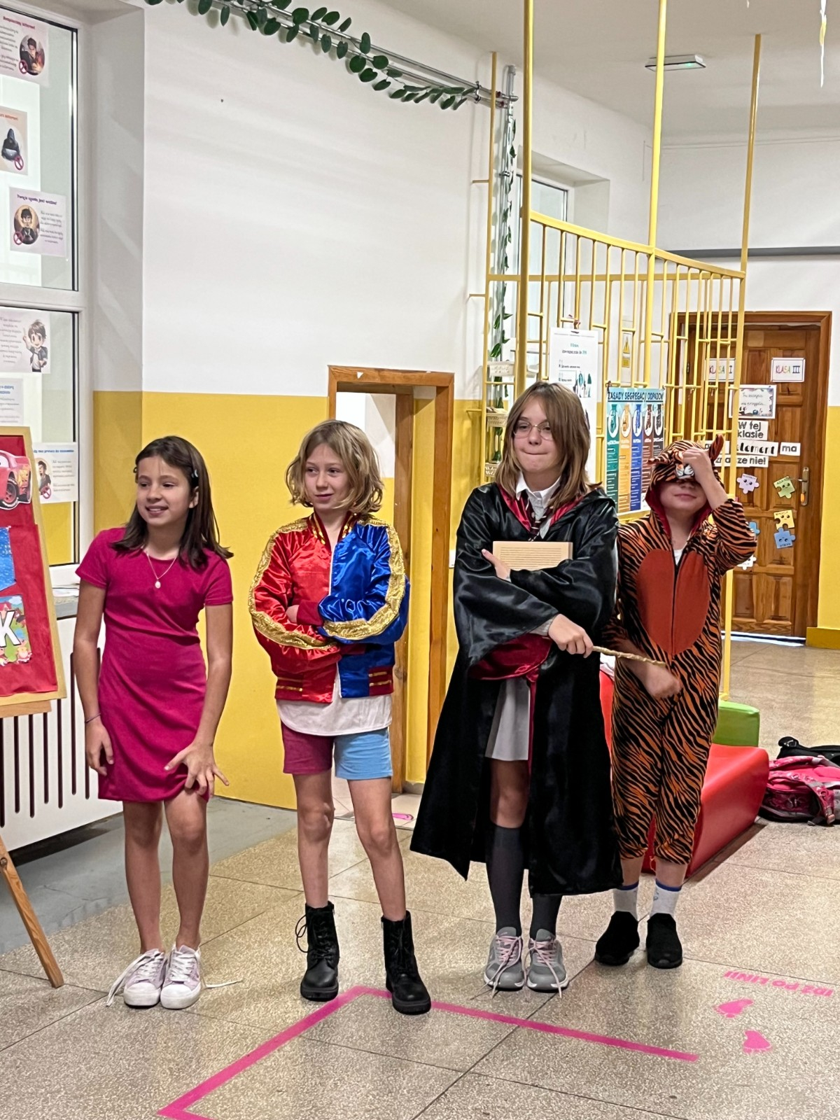 Z okazji Międzynarodowego Dnia Postaci z Bajek uczniowie, przedszkolaki oraz nauczyciele przenieśli się do magicznego świata znanych i lubianych bohaterów. Tego dnia na szkolnych korytarzach można było spotkać m.in. Kopciuszka, Czerwonego Kapturka, Królewnę Śnieżkę, Kota w Butach, Spider-Mana czy Elzę. Każda klasa zaprezentowała swoje bajkowe stroje, a podczas wspólnej prezentacji uczniowie mogli podziwiać pomysłowość i kreatywność kolegów oraz nauczycieli. Nie zabrakło też czytania bajek — nauczycielki oraz starsi uczniowie czytali młodszym kolegom i koleżankom krótkie opowieści, przypominając, jak ważne są marzenia, dobroć i przyjaźń. Po bajkowych występach przyszedł czas na konkursy i zabawy tematyczne, które sprawiły wszystkim wiele radości. Na zakończenie uczestnicy mogli zrobić sobie pamiątkowe zdjęcia – zarówno wspólne, jak i w specjalnej bajkowej fotoramce. Nie zabrakło także słodkiego poczęstunku, który był doskonałym zwieńczeniem tego radosnego dnia. Międzynarodowy Dzień Postaci z Bajek przypomniał wszystkim, że warto wracać do świata baśni, gdzie dobro zawsze zwycięża, a wyobraźnia nie zna granic.
