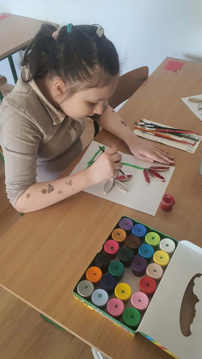 Wiosna to czas świeżości i nowych pomysłów. Zadanie polegało na stworzeniu barwnych kwiatów przy użyciu dowolnych materiałów np.: bibuły, papieru, farb czy plasteliny. Gabrysia zrobiła własny „ogród marzeń”, w którym każdy z jej wykonanych kwiatów symbolizował: uczucia, pragnienia i marzenia, była to także doskonała okazja do rozmów o emocjach i wrażliwośći. Podczas wykonywaniu prac plastycznych uczennicy klasy trzeciej Gabrysi towarzyszyły wiosenne słuchowiska, oraz w trakcie przerw zabawy ruchowe. Opiekunem warsztatów jest Anna Pałys.
