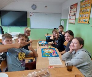 Dodatkową atrakcją była piosenka pt. „Bohater”, wykonana dla kolegów przez koleżanki. Zaśpiewały ją Estera Saczewska – uczennica kl. IV oraz Natalia Stopa – uczennica kl. V. Urozmaiceniem tego dnia była muzyka, którą można było usłyszeć na szkolnym korytarzu w czasie przerw. Oprócz szkolnych obchodów, odbyło się również klasowe świętowanie tego dnia. Uczniowie klas I-III oraz kl. VI delektowali się smakiem pizzy dowiezionej do naszej szkoły, szóstoklasiści grali również w gry planszowe. Uczniowie kl. IV i V pod opieką pań: Irminy Berlickiej oraz Alicji Petryckiej rozpalili ognisko, na którym można było upiec smaczne kiełbaski. Natomiast najstarsi uczniowie z kl. VII postanowili zabawić się w kucharzy i sami upiec pizzę. Pomysł okazał się bardzo trafiony, ponieważ pizza wyszła pyszna, a zabawa przy jej wykonaniu jeszcze bardziej zintegrowała klasę. Pragniemy serdecznie podziękować p. Magdalenie Fuks i p. Annie Śliwie za pomoc przy pieczeniu pizzy oraz pyszne rogaliki i babeczki, które panie przygotowały specjalnie na tę okazję.