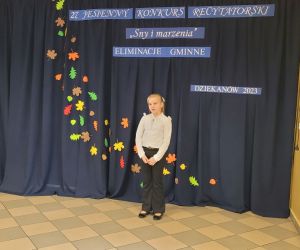 Dnia 26 października 2023 r. uczniowie naszej szkoły wzięli udział w Eliminacjach Gminnych 27. Jesiennego Konkursu Recytatorskiego pod hasłem „Sny i marzenia”, które odbyły się w Świetlicy Wiejskiej w Dziekanowie.