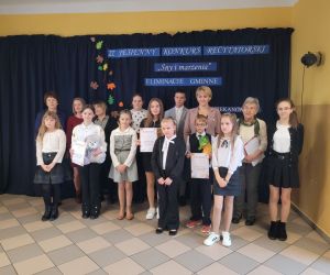 Naszą szkołę zaprezentowało 6 uczniów, wyłonionych w drodze klasowych eliminacji: Estera Saczewska – kl. IV, Natalia Stopa – kl. V, Kinga Zymon – kl. V, Karolina Berlicka – kl. VII, Magdalena Matelska – kl. VII oraz Mikołaj Fuks – kl. VII.