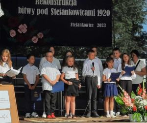 Tak było również w tym roku. W uroczystości upamiętniającej 103. rocznicę bitwy pod Stefankowicami, która rozpoczęła się o godz. 12:00 przy tablicy pamiątkowej w Stefankowicach, wzięła udział delegacja uczniów z naszej szkoły wraz z pocztem sztandarowym pod opieką nauczycieli. Poczet sztandarowy reprezentowali następujący uczniowie: Oliwia Biber, Magdalena Matelska, Julia Śliwa, Małgorzata Turko, Natalia Stopa, Bartosz Stopa oraz Igor Troć. Przed tablicą pamiątkową odczytany został apel pamięci oraz oddana salwa honorowa, następnie złożone zostały wiązanki kwiatów i znicze przez delegacje reprezentujące władze samorządowe Hrubieszowa, służby mundurowe, organizacje działające na rzecz pielęgnowania pamięci o ważnych wydarzeniach w historii Polski, mieszkańców Stefankowic i Kolonii Stefankowice oraz uczniów naszej szkoły, którym przewodziła Pani Dyrektor Joanna Antoniak. Następnie wszyscy goście uroczystości przeszli na górkę dworską, gdzie po drodze zapalono znicze przy dębach pamięci. O godz. 13:00 odprawiona została msza święta w intencji poległych pod Stefankowicami, celebrowana przez ks. Jana Semeniuka. Do oprawy mszy św. zaangażowani byli uczniowie naszej szkoły pod opieką katechetki – p. Celiny Malec. W uroczystej mszy św. uczestniczył również poczet sztandarowy naszej szkoły, nad którym pieczę sprawowały: p. Daria Germańska-Bednarczuk i p. Monika Skóra. Kolejną częścią obchodów była część artystyczna w wykonaniu uczniów naszej szkoły. Za jej przygotowanie odpowiedzialne były: p. Irmina Berlicka, p. Monika Marel-Knap, p. Monika Stefańska, p. Monika Skóra oraz p. Urszula Herman. Na koniec, o godzinie 16.00, odbyła się rekonstrukcja bitwy z 1920 roku.